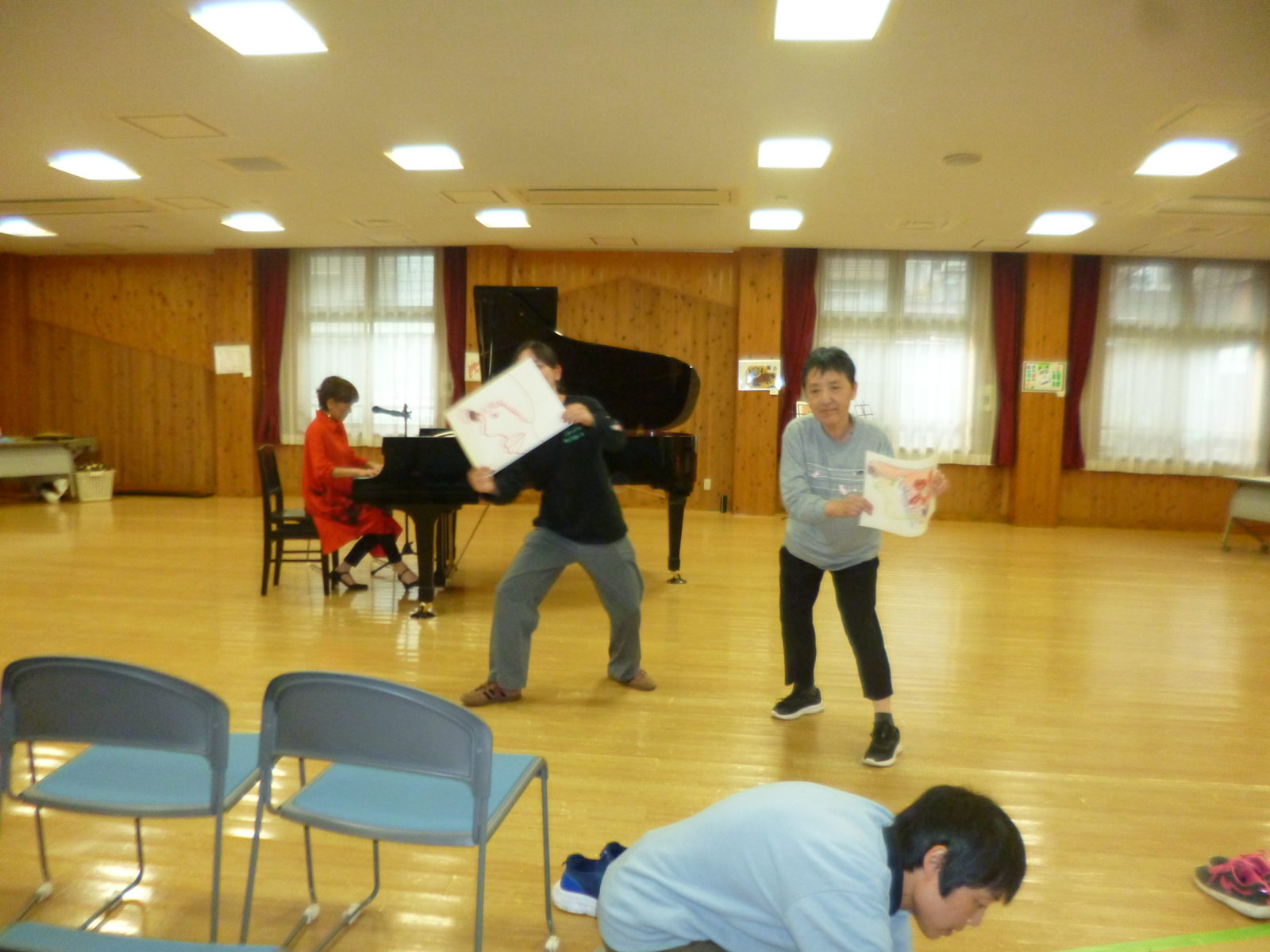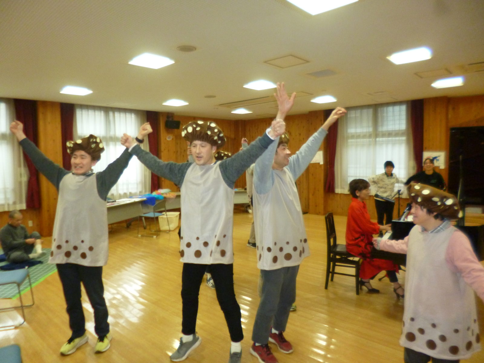 第二部では、園生が弾いた音や、描いた絵が音楽になったり、それに合わせて踊ってみたり、いつもの鼻歌でのピアノセッションがあったり、しいたけソングをみんなで歌ったり…。さまざまな面白いものが即興的にたくさん生まれました。