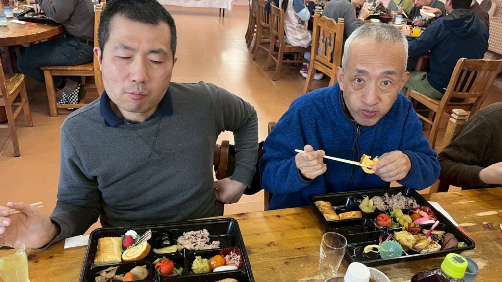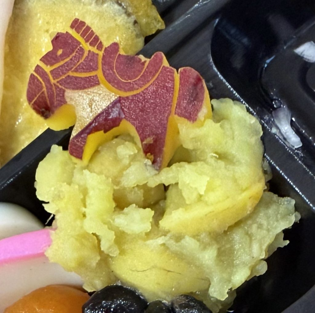 元旦の昼食は、豪華なおせち料理がテーブルに並び、新年の幕開けにふさわしい華やかな食事を楽しみました!栗きんとんの上には干支の形に型取られたさつま芋が乗っていたり、鯛のお刺身のお造りを出して頂いたり、毎年手の込んだおせち料理を提供してくださるハーベストさんには感謝の気持ちでいっぱいです。