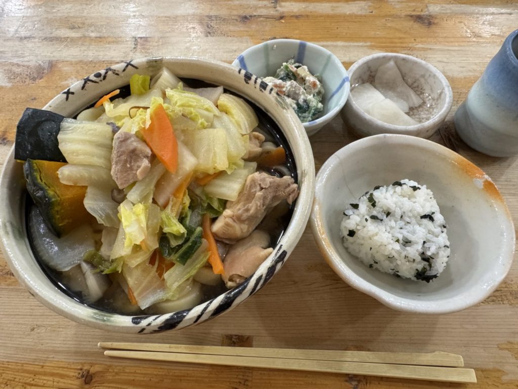 三日の昼食にはハーベストさん手作りのほうとうを食べ、体の芯から温まるひと時を過ごしました。