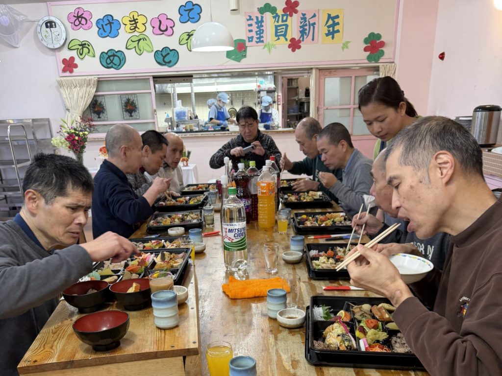 年末年始は帰宅している利用者さんも多くいるので、ボードゲームやテレビゲームで盛り上がったり、こたつに入りながらゆっくりテレビを見てのんびりと過ごしました。