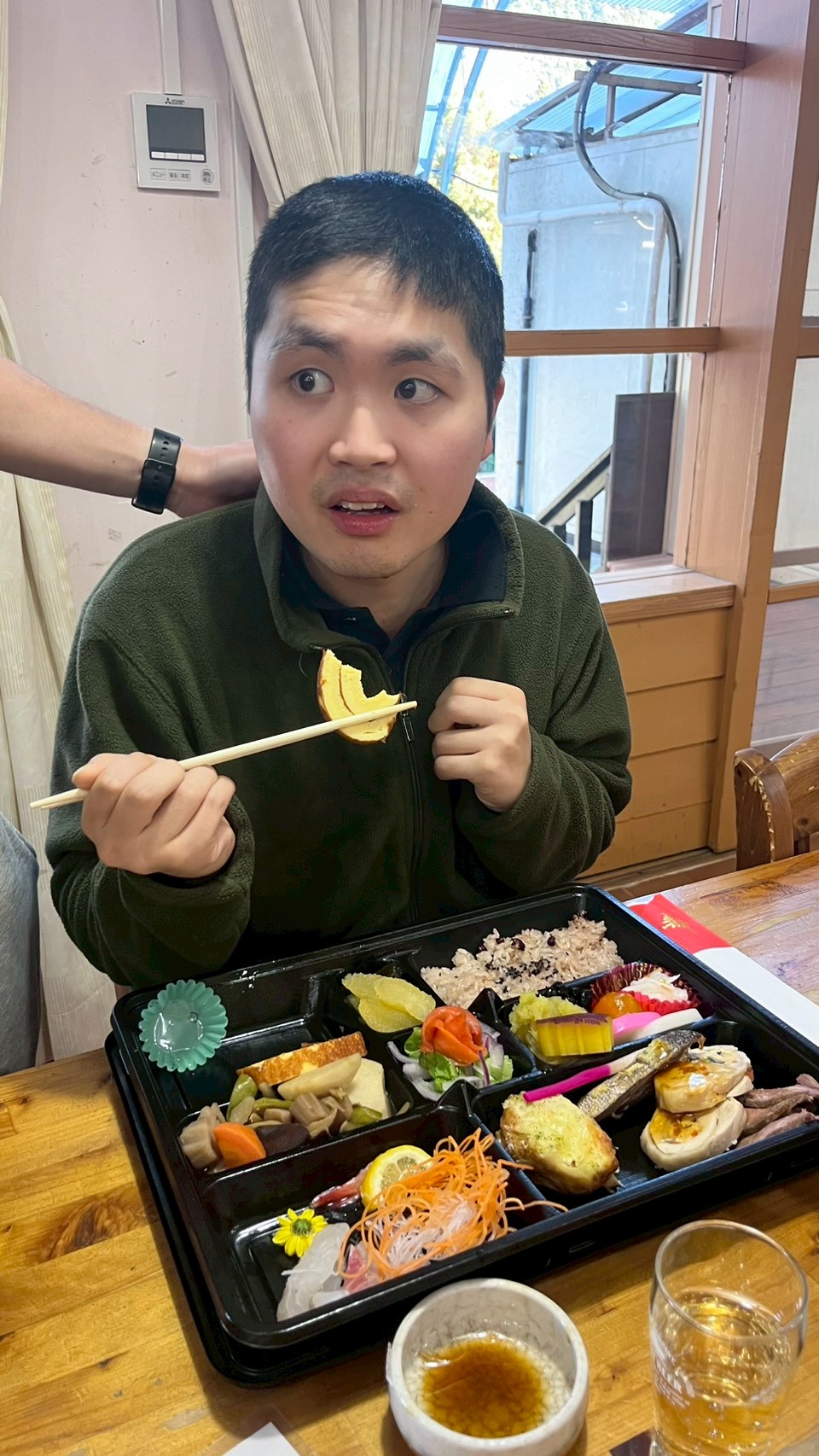 元旦の昼食は、豪華なおせち料理がテーブルに並び、新年の幕開けにふさわしい華やかな食事を楽しみました!栗きんとんの上には干支の形に型取られたさつま芋が乗っていたり、鯛のお刺身のお造りを出して頂いたり、毎年手の込んだおせち料理を提供してくださるハーベストさんには感謝の気持ちでいっぱいです。